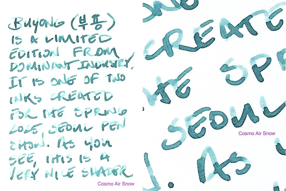 Dominant Industry Buyong Ink Swatch on Cosmo Air Light and Tomoe River Papers