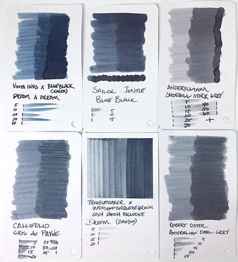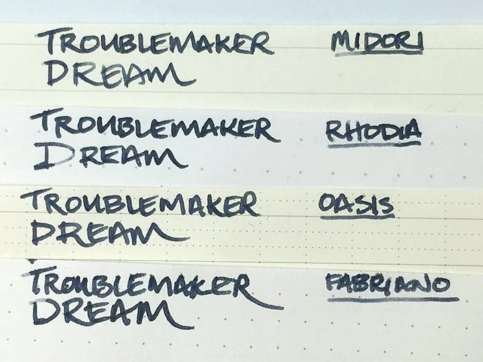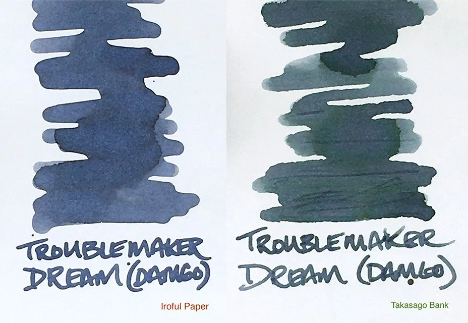 I really enjoyed writing with Dream. The flow is neutral and the experience is filled with ease and comfort. The shading really is impressive on high-quality papers, and it’s fun to watch each stroke produce the great variation you see from light to dark. Darker areas have a nice stroke outline, while lighter areas fade to little more than a ghostly trace of the base color. It’s easily legible and beautifully varied. Bleeding and feathering were never a problem. Drying times were exactly what you want, too.