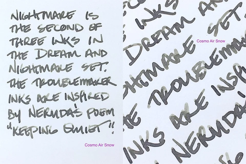 It’s July 2025, and although the three-ink series bundle (and the Dusk pen that was released at the same time) and the individual 60 ml bottles of Dusk are sold out, you can still find the 60 ml bottles of Dream and Nightmare available at Endless Pens for around US$20.