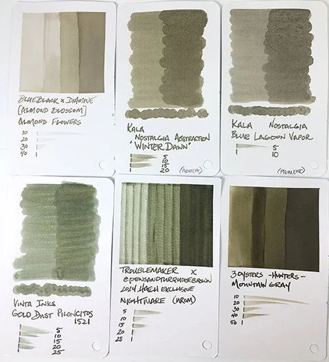 Ink Swatches on Iroful and Takasago Bank papers
