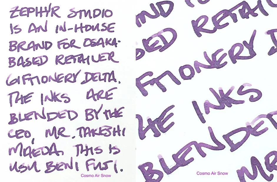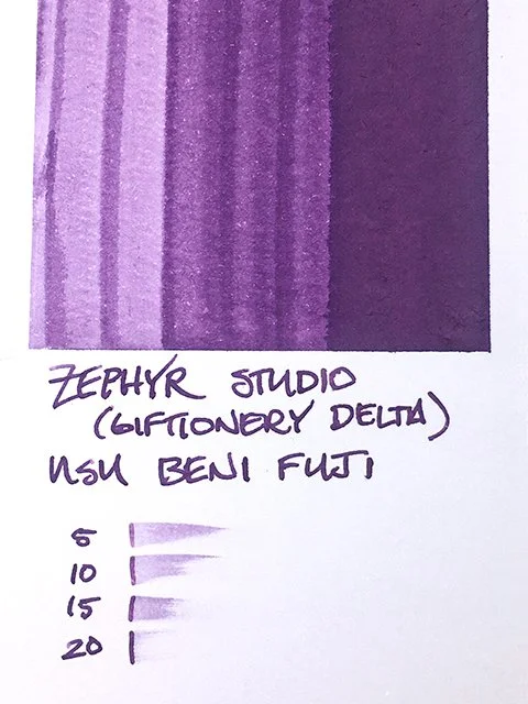 Zephyr Studio is an in-house ink and glass pen brand for Osaka’s Giftionery Delta. In 2025, they released five inks. This gorgeous purple is Usu Beni Fuji.