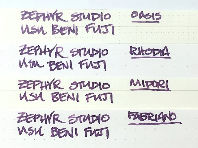 Zephyr Studio Usu Beni Fuji writing sample on Cosmo Air Snow paper